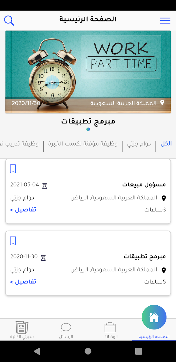 تطبيق بي تي بارت تايم يتيح لك متابعة الوظائف مع امكانية التقديم عليها بإنشاء سيرتك الذاتية في حسابك ومتابعة عملية التقديم من جوالك كما يتيح لأصحاب العمل نشر اعلانات الوظائف والاطلاع على المتقدمين عليها والتواصل معهم